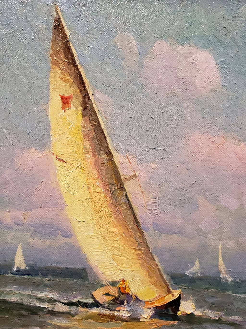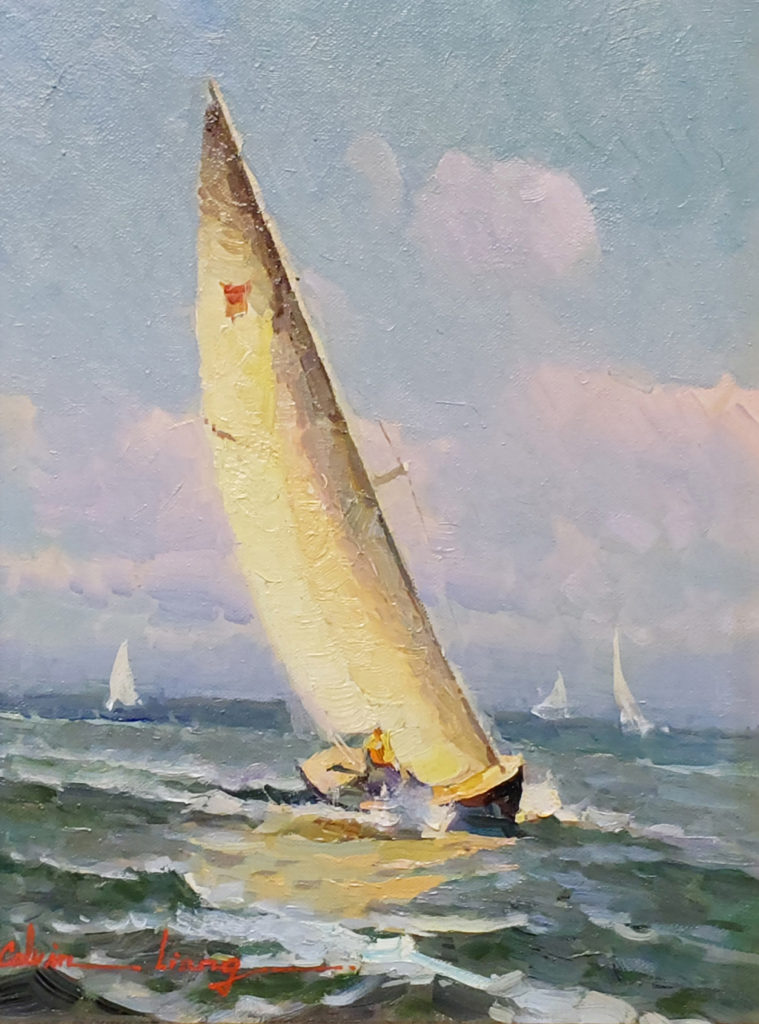 • Calvin Liang Artist Oil painting Newport Sailboat