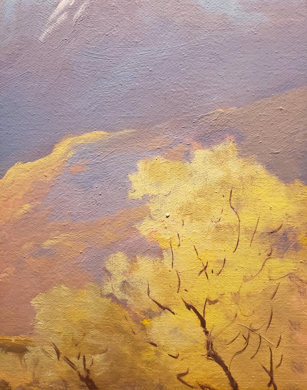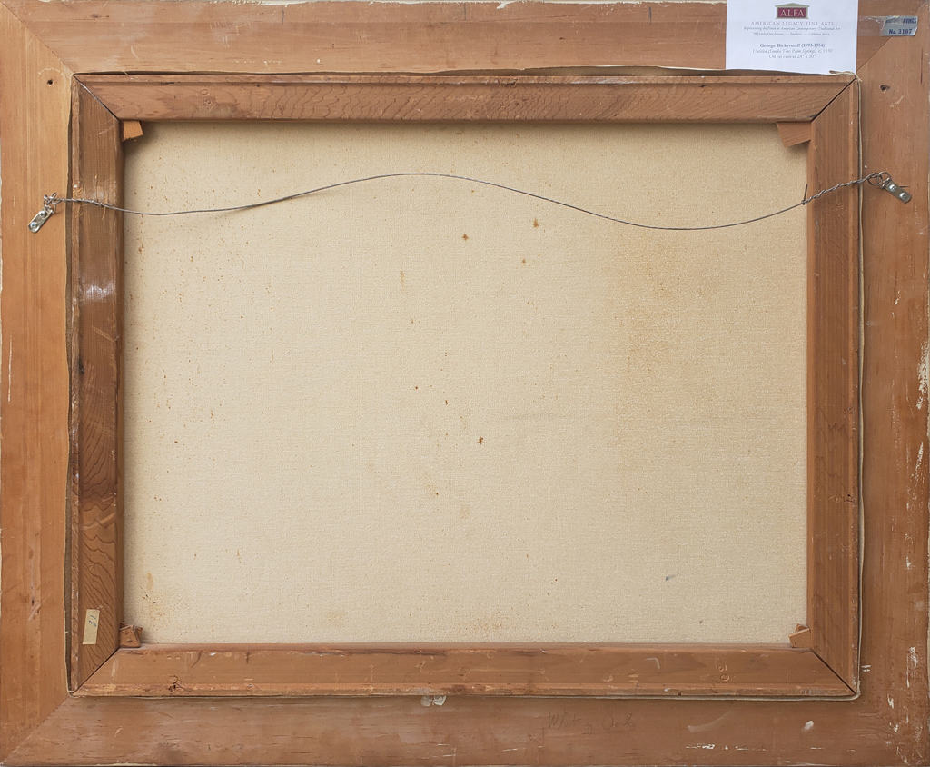 George S. Bickerstaff was a well-regarded California landscape painter, active during the height of the state’s plein air movement. His work celebrated the diverse terrains of California, from coastal vistas to inland deserts, and often featured the distinctive smoke tree of the Coachella Valley, an emblematic subject for desert painters of his era. By the mid-century, Palm Springs was emerging as a resort town, yet much of its surrounding desert remained wild and untouched. This painting reflects not only the artist’s mastery of light and atmosphere but also serves as a visual record of a landscape that has since been altered by development. Created during the late phase of California’s plein air tradition, it bridges the tonal romanticism of earlier painters with the bolder color harmonies of modernist sensibilities.