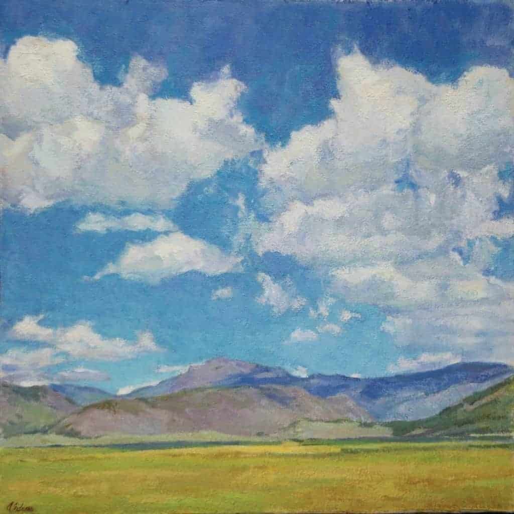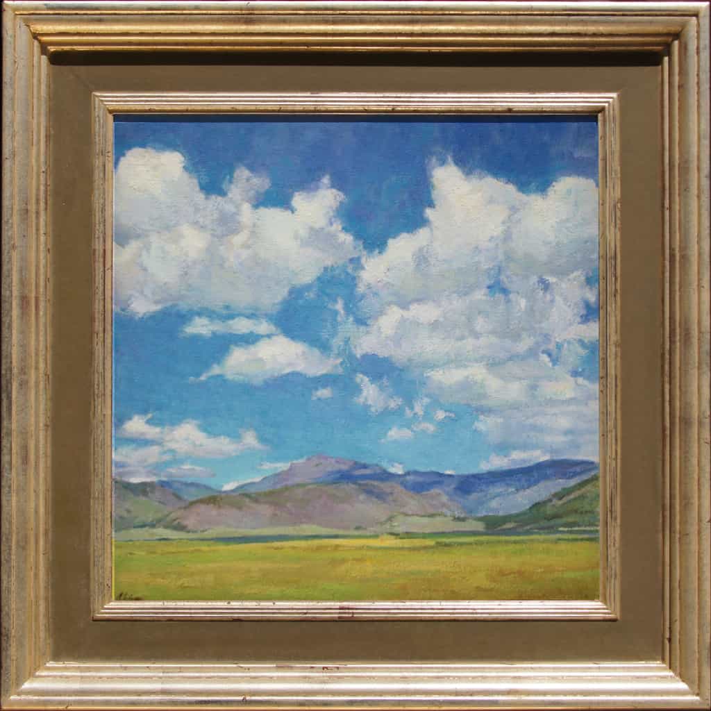 “Often this time of day can be flat and not the most interesting time to paint. However, the clouds drifting over head painted a pattern on the distant hills, which was my invitation to stay.”