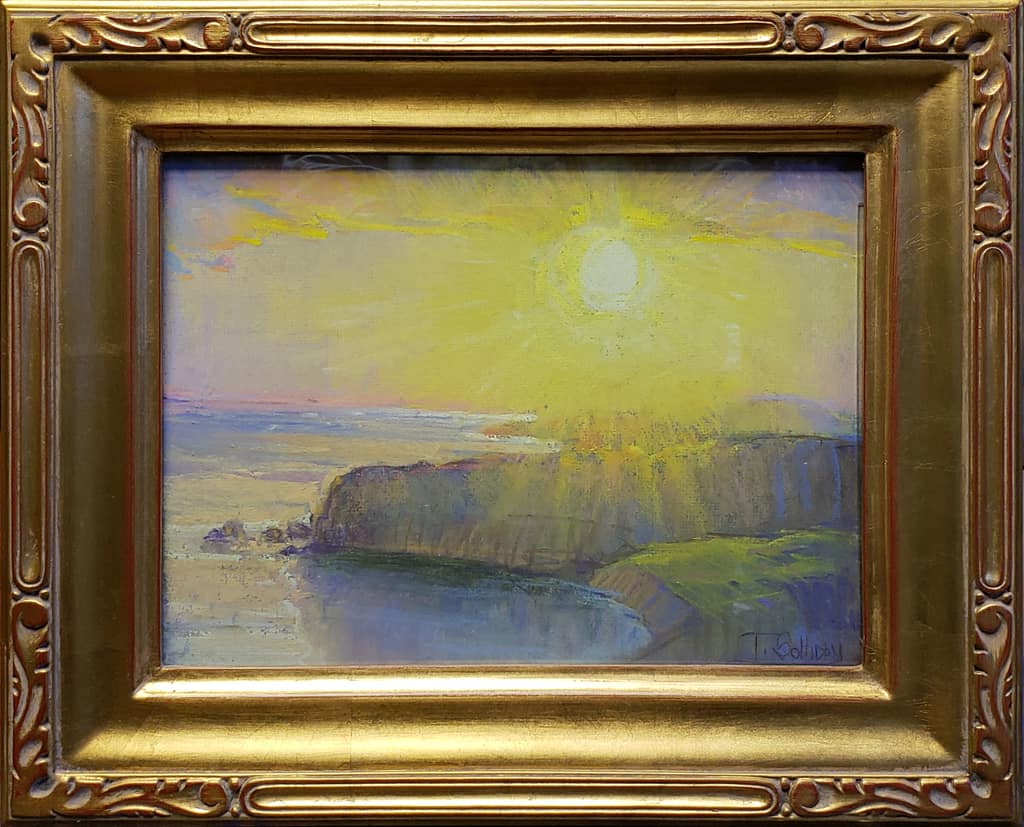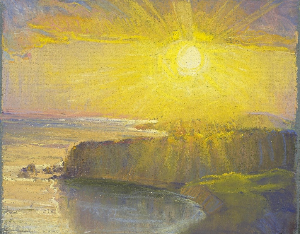 Created en plein air using the pastel medium, Solliday's fresh and immediate approach exemplifies a sense of spontaneous joy. The location is Abalone Cove in Palos Verdes, a favorite spot along Southern California's Highway 1 scenic drive famous for its magnificent views of the Pacific Coast.