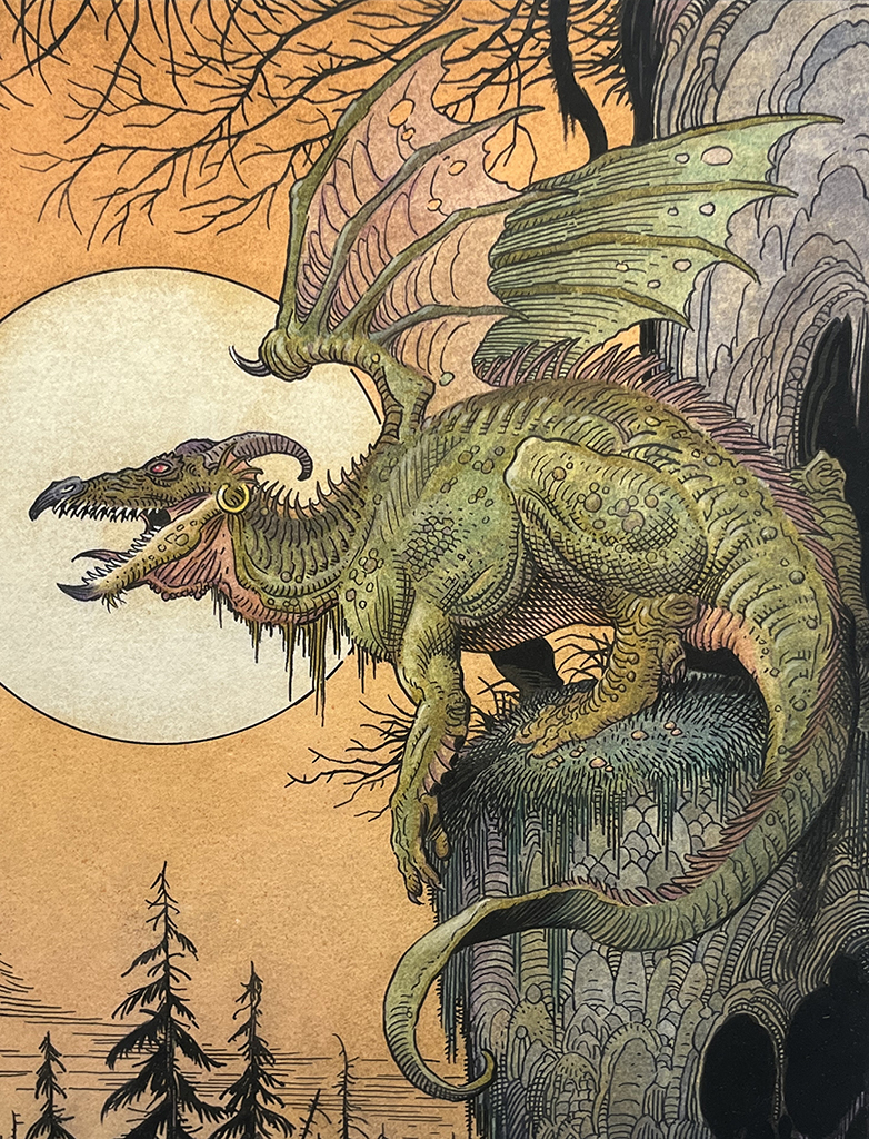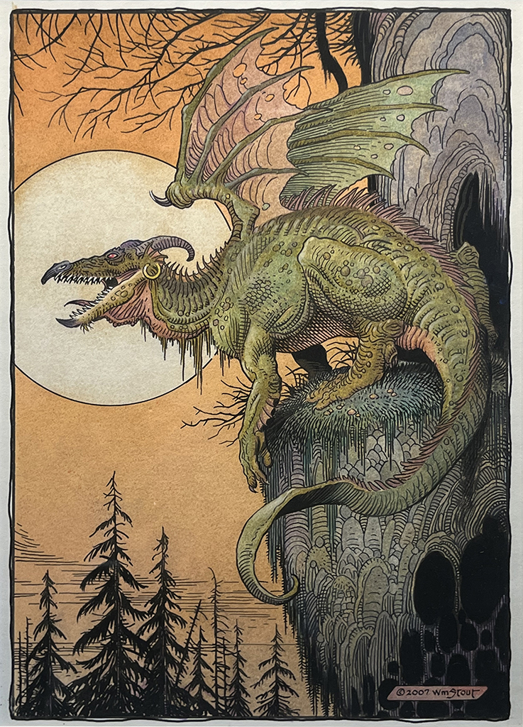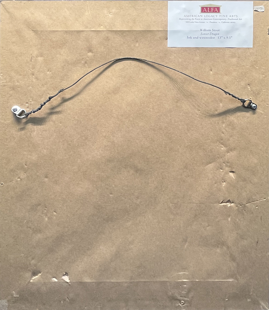 William Stout Available Work Archives Biography Press and Publications Commissions View in Room Sizing is approximate. See specs for exact dimensions. Twitter Email William StoutSunset DragonInk and watercolor on board13" x 9.5", artwork20.25" x 16.25" x 1.75", framedContemporary$6,000 In stock Sunset Dragon quantity Purchase Now Request More Information Provenance Acquired by American Legacy Fine Arts directly from the artist Exhibited The Imaginary, Carnegie Art Museum, Oxnard, California, March 10 – May 19, 2019 Need help? Call our ALFA specialists +1 626.577.7733 Additional Available Artwork by William Stout