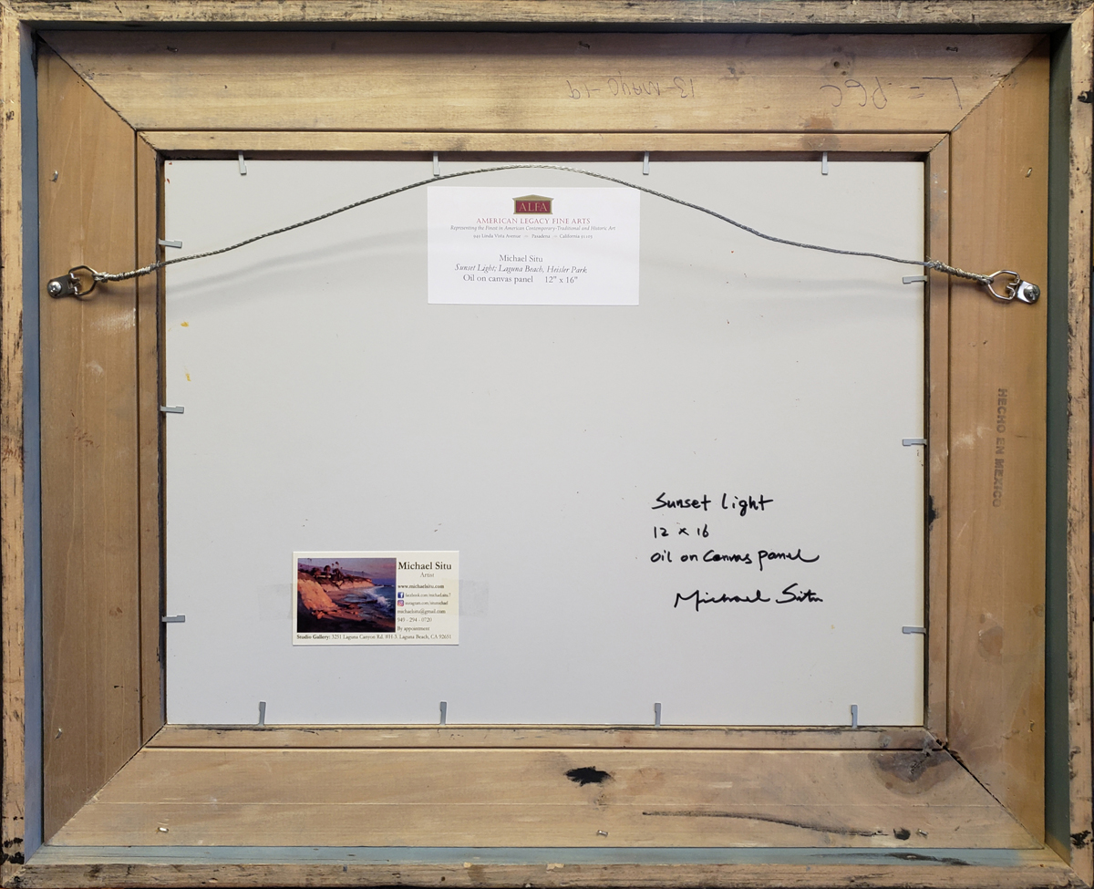 “I love seeing the sunset's colored light reflecting on the ocean. The painting location is Heisler Park, Laguna Beach.”