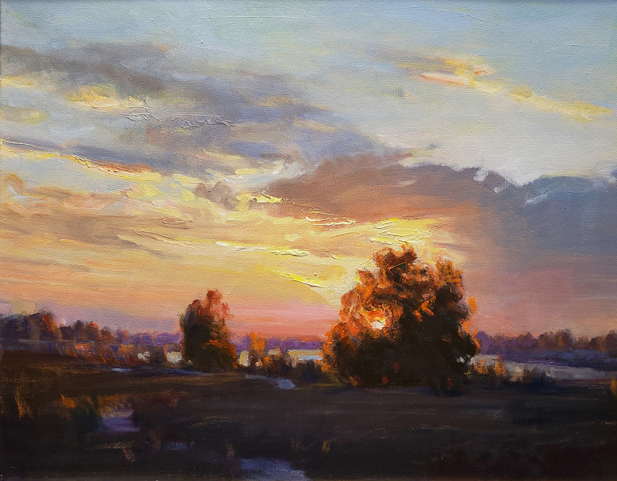 "This is the place near my house—Peck Road Park in Arcadia, CA. It is a perfect spot to watch the sunset all year long. I always walk there to sketch, take photos, and sometimes just stand there watching the sunset. Sunsets are one of my favorite painting subjects now."