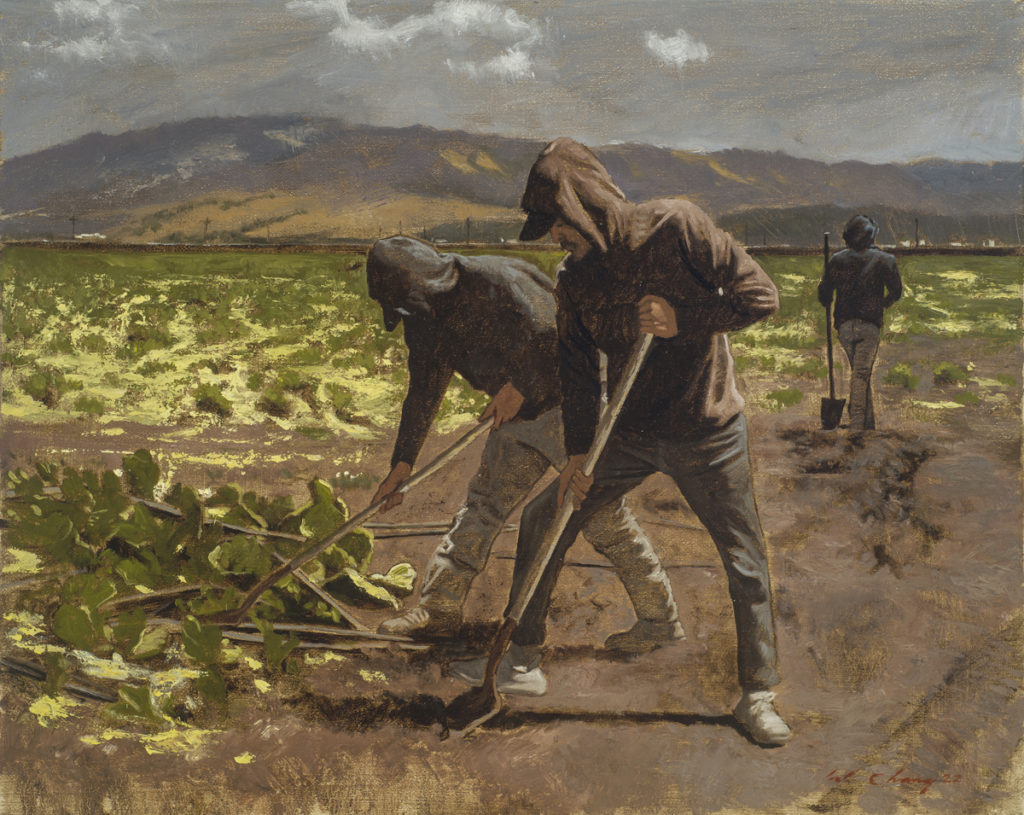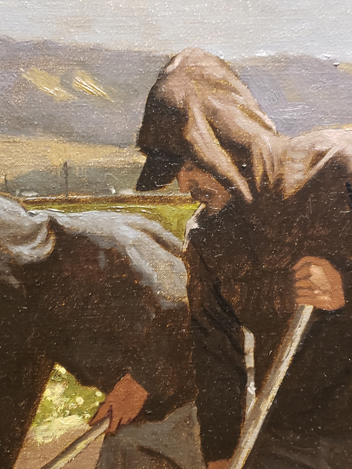 "Inspired by Francois Millet's etching of the same name. Depicts workers in the field in preparing the soil for the next harvest."