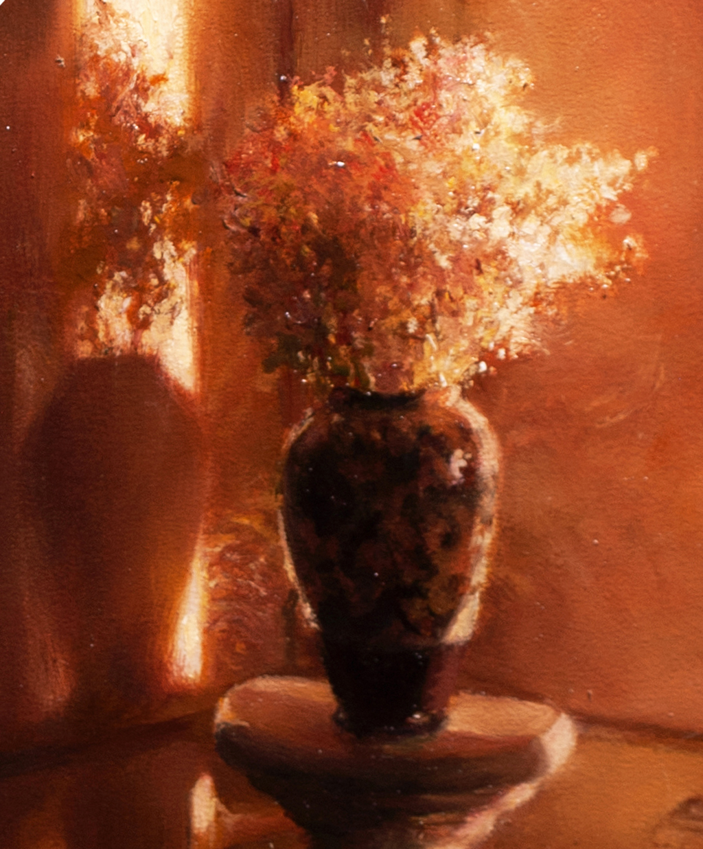 “As the sun dips lower on the horizon, the angle of the light changes, causing it to stream through windows and create a natural spotlight effect. The result is a breathtaking display of warm light and shadow that transforms the look and feel of space. During the Golden Hour, this vase with Gypsophila in the corner of the room is elegantly illuminated and every time I pass by it, I take a moment to bask in the beauty and wonder of the natural world.”