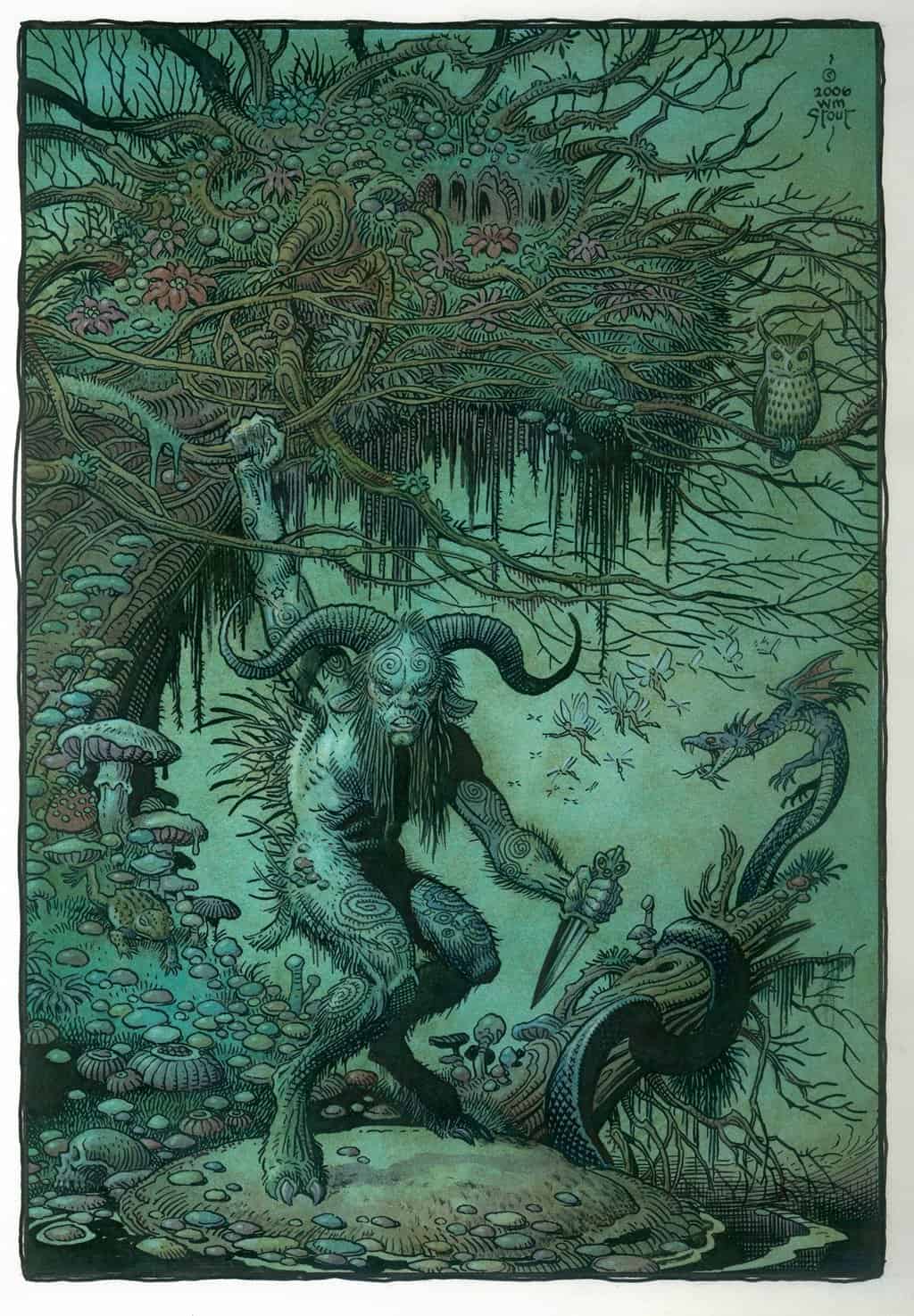 William Stout Available Work Archives Biography Press and Publications Commissions View in Room Sizing is approximate. See specs for exact dimensions. Twitter Email William StoutThe Faun (Pan)Ink and watercolor on board13.5" x 9.5", artwork22.875" x 18.5" x 1", framedContemporary$6,000 In stock The Faun (Pan) quantity Purchase Now Request More Information Provenance Acquired by American Legacy Fine Arts directly from the artist Exhibited The Imaginary, Carnegie Art Museum, Oxnard, California, March 10 – May 19, 2019 Need help? Call our ALFA specialists +1 626.577.7733 Additional Available Artwork by William Stout