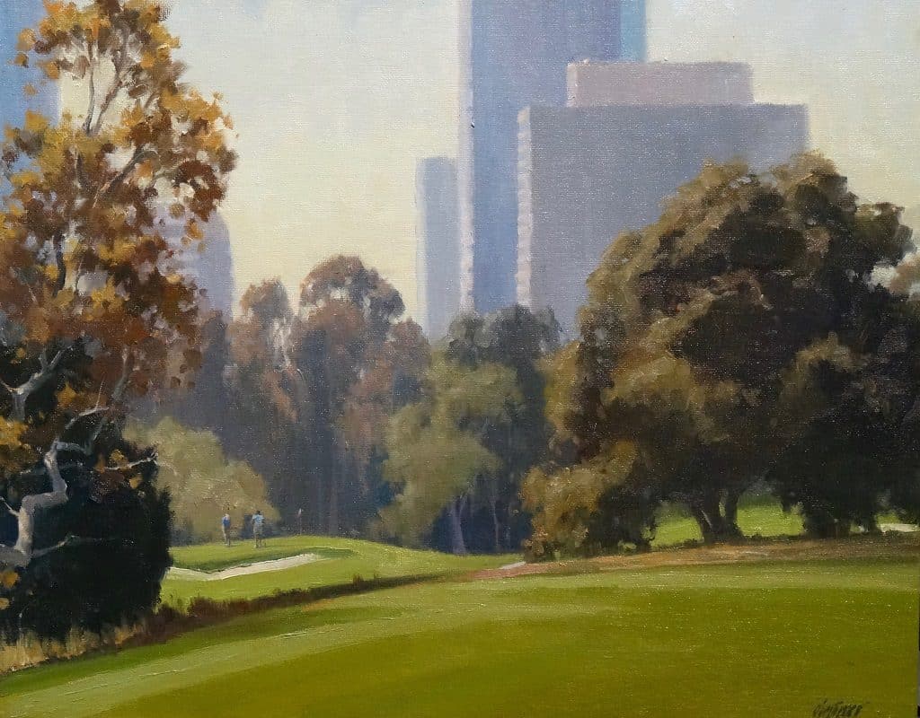 The painting was created during the Invitational Plein Air Event at Los Angeles Country Club on the South Course, July 22-24, 2016. Organized by American Legacy Fine Arts in Collaboration with LACC Art Committee.
