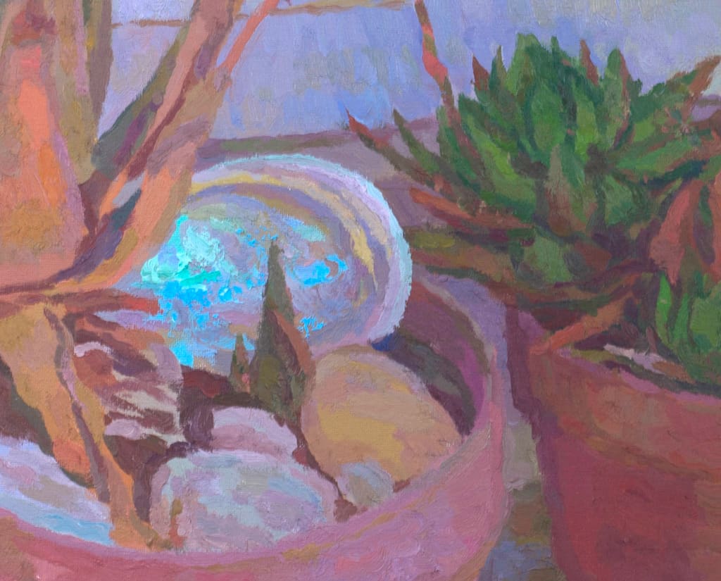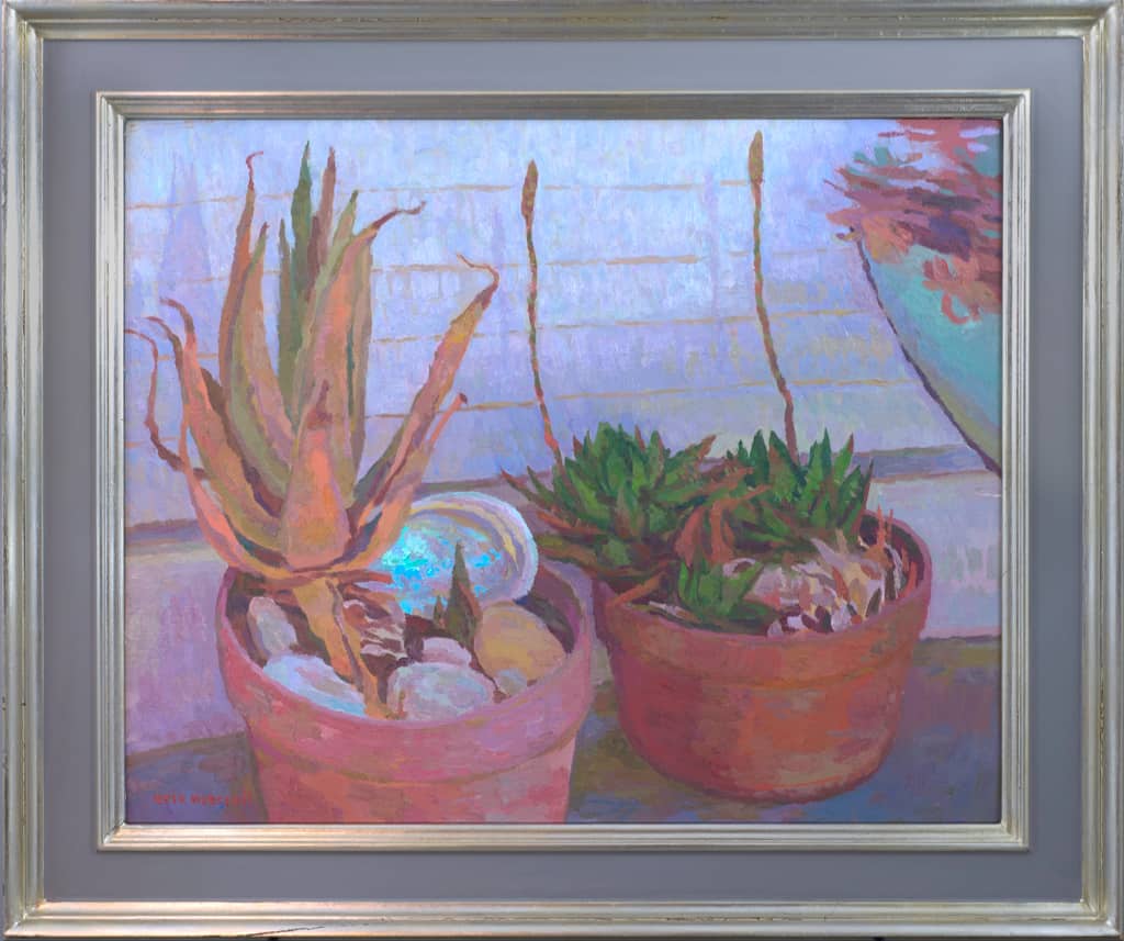 Description The Heat Approaches depicts planted succulents thriving in the sweltering heat. Each succulent has a variation in shape and hue. These idiosyncrasies capture the look and texture of each plant. The faintest of shadows showcase that the beauty of this painting is truly in the details.
