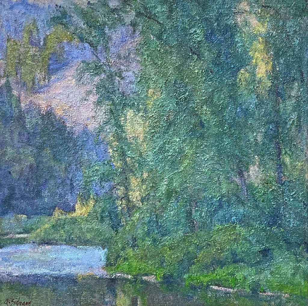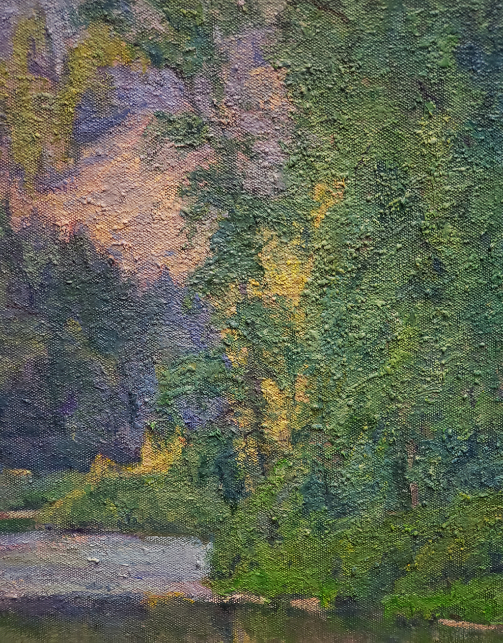 My original location study was painted in late July as the light slipped behind the canyon walls, witnessing the beautiful play of light and shadow on the Joe."