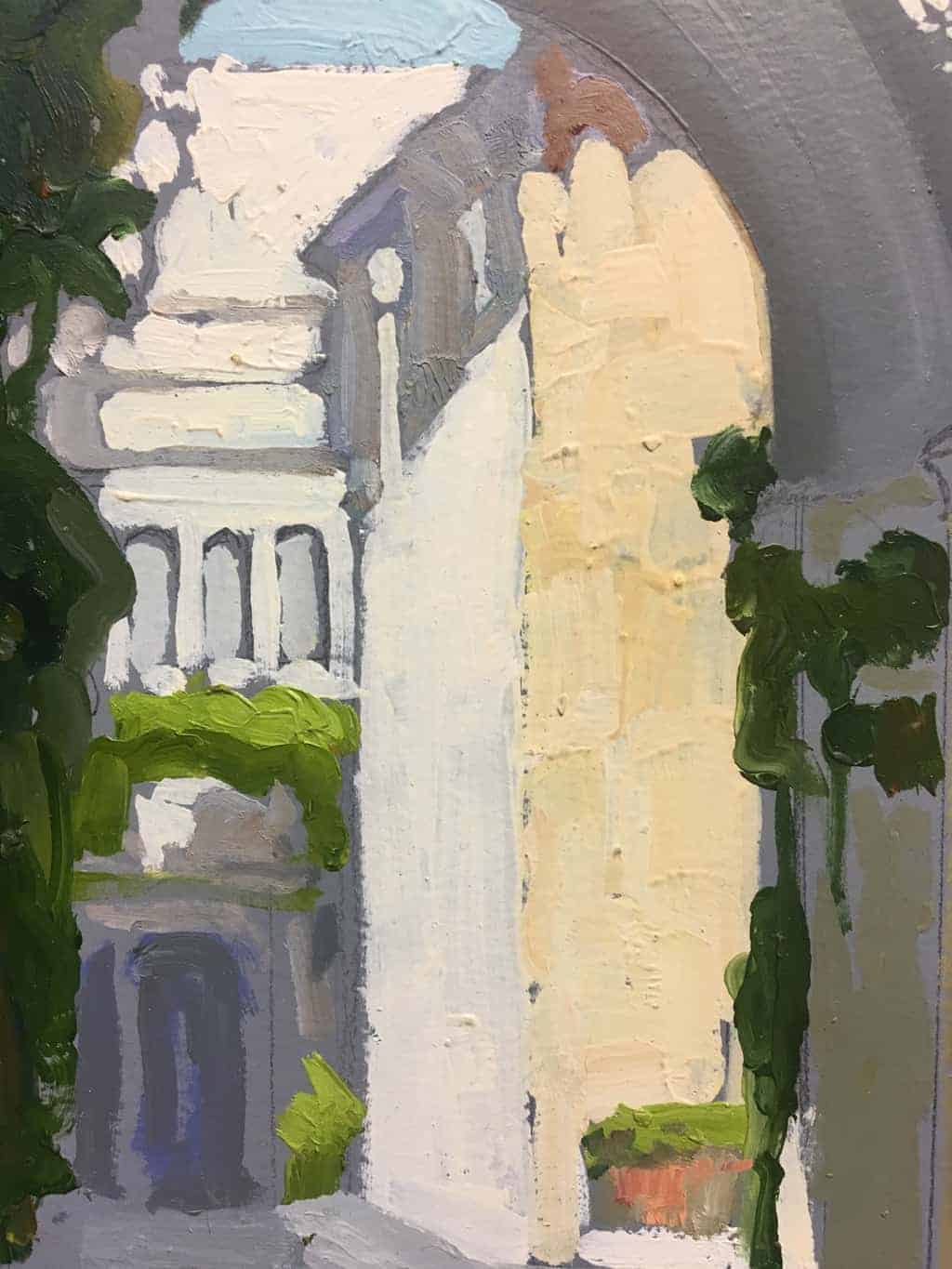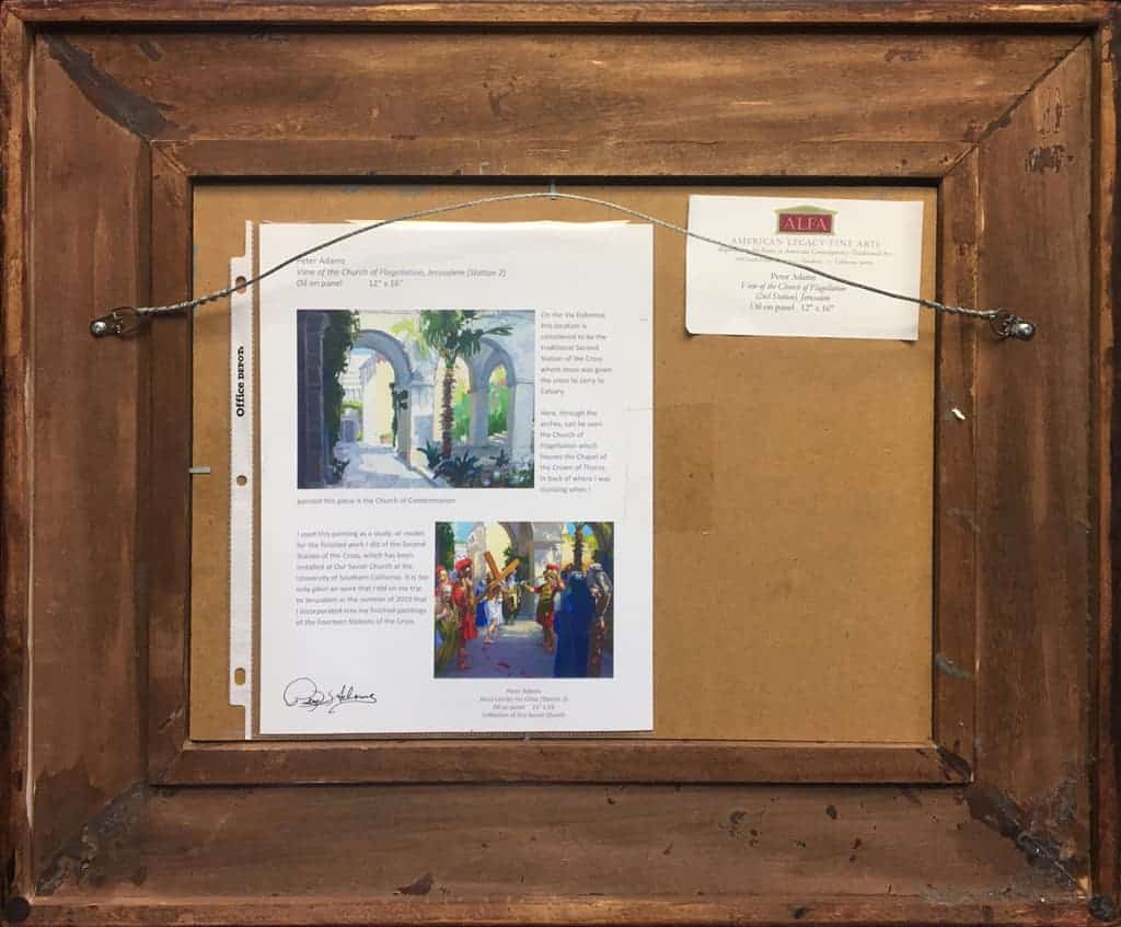 I used this painting as a study, or model, for the finished work I did of the Second Station of the Cross, which has been installed at Our Savior Church at the University of Southern California. It is the only plein air work that I did on my trip to Jerusalem in the summer of 2010 that I incorporated into my finished paintings of the Fourteen Stations of the Cross."