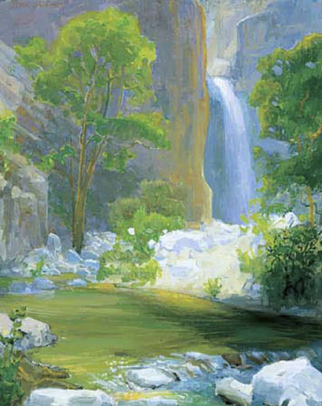American Legacy Fine Arts presents "Waterfall at Eaton Canyon" a painting by Peter Adams.