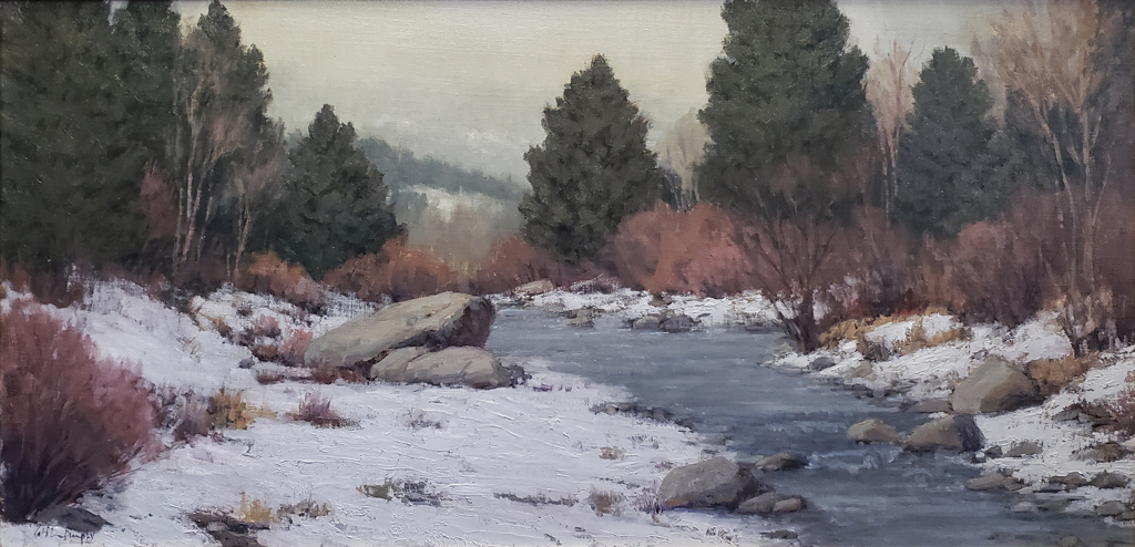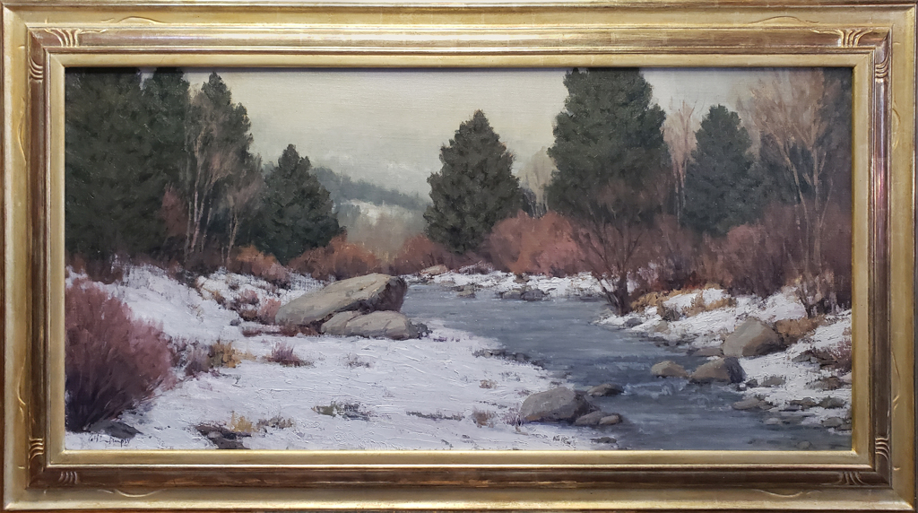 "I painted this piece in the studio using studies done along the Truckee River in January. The cold temps only allowed for small, fast studies and I was anxious to spend more time on this more extensive, larger work back home in the comfort and warmth of my studio."