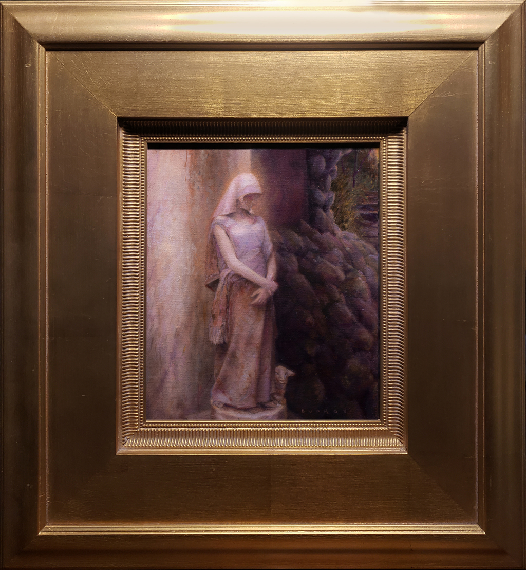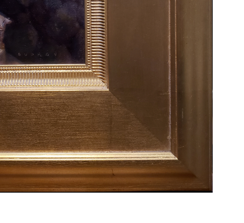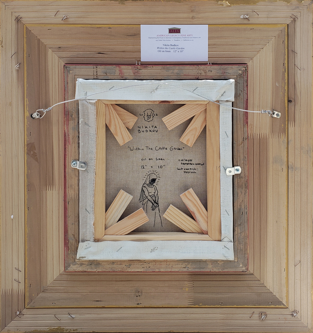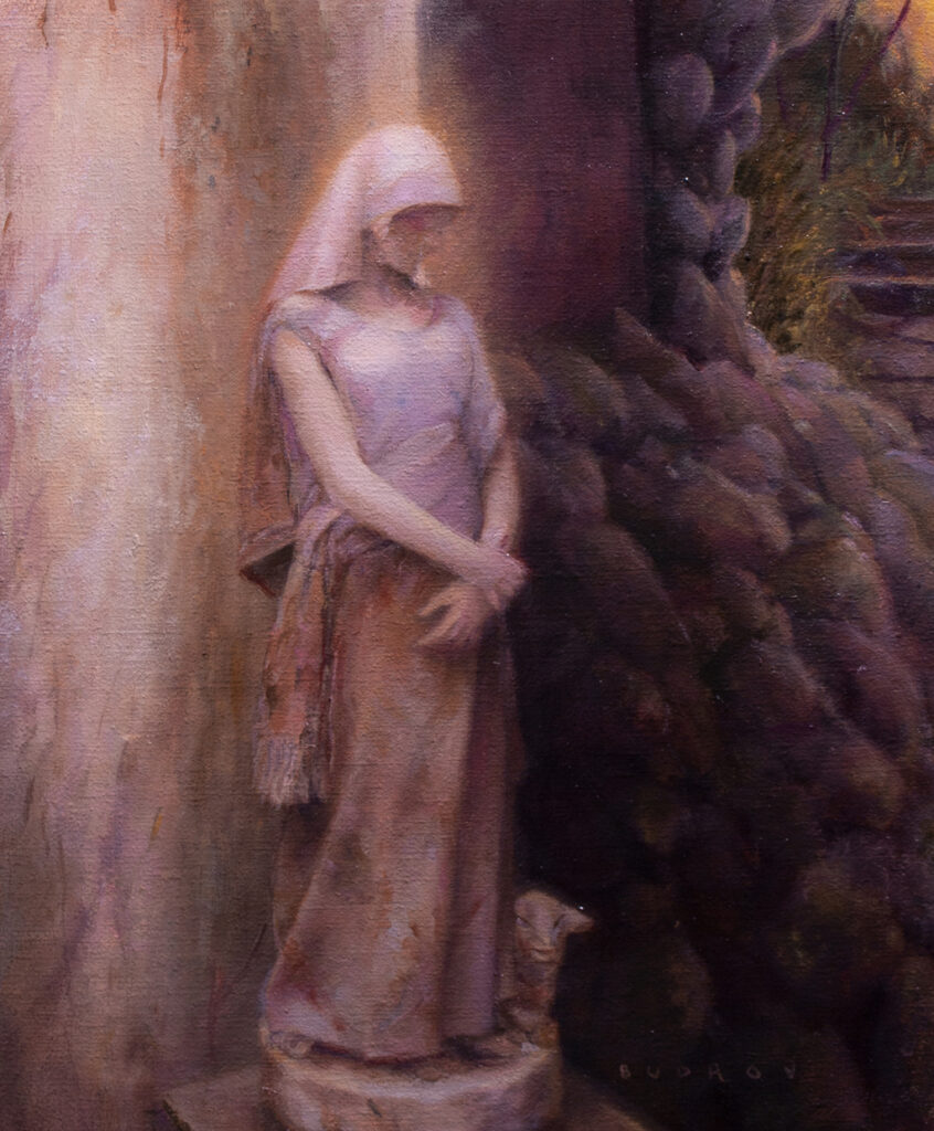 “This one was painted around the premises of American Legacy Fine Arts gallery. I am keen on painting sculptures and that was my first time trying to imitate alabaster. Even though I started this piece en plein air around these very walls, the subject has quickly taken me to the romantic medieval times straight from 19th-century literature. I thought of palaces and castle gardens, and that’s why I titled the painting like this once it was completed.”