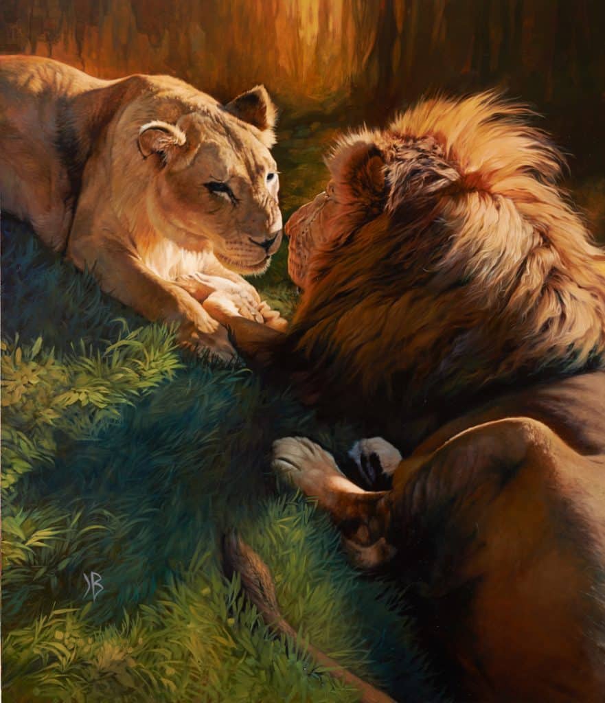 People have told me that when they look at my animal paintings, they feel like they're "one of them." The tender but solid bond of these two lions of You and Me remind me of myself and the love of my life, my husband, Boris; but also, in the more universal sense, You and Me represents you, the viewer, and me, the artist. I'm communicating with you on a subconscious level because we are this." — Julie Bell