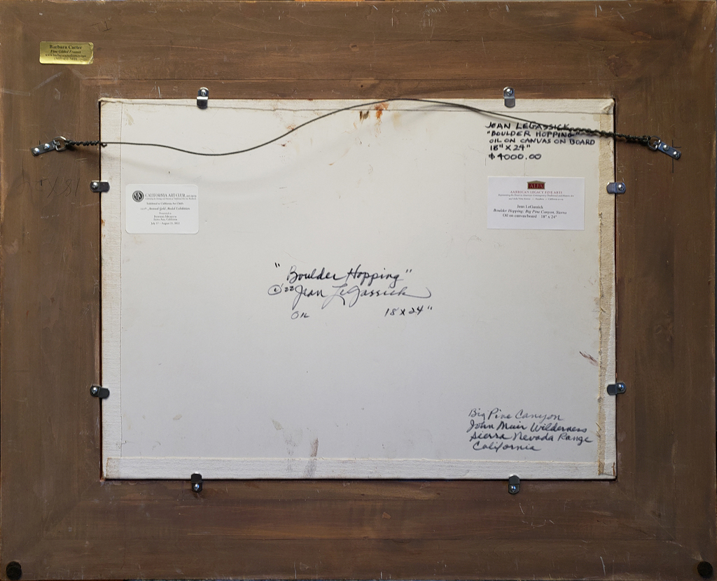 Jean LeGassick – Boulder Hopping; Big Pine Canyon, Sierra, Oil on canvas board 18″ x 24″ Post navigation Previous: Jean LeGassick – Boulder Hopping; Big Pine Canyon, Sierra, Oil on canvas board 18″ x 24″