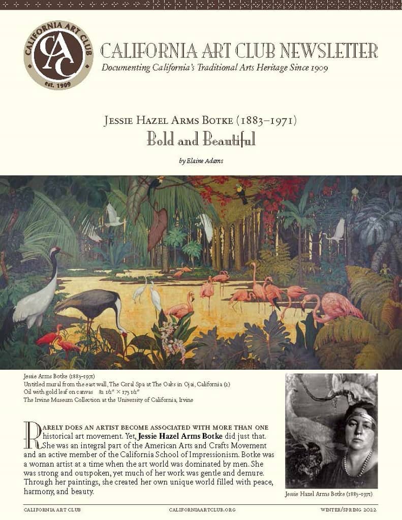American Legacy Fine Arts presents Jessie Hazel Arms Botke in the California Art Club Newsletter, Winter/Spring 2022 Issue.