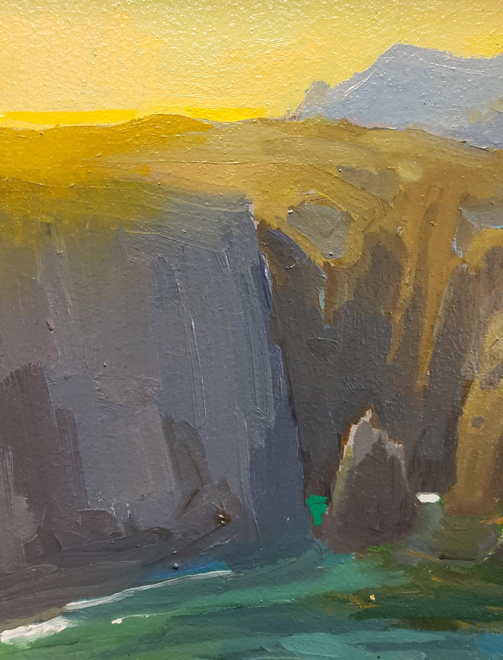 Peter Adams – Afternoon Glow, Cathedral Cove; Anacapa Island, Oil on panel 12″ x 16″