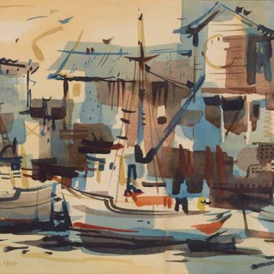 Robert E. Wood Untitled (San Pedro Harbor, Tuna Boats and Canneries), 1959 Watercolor 13.5" x 20.5" Not Available